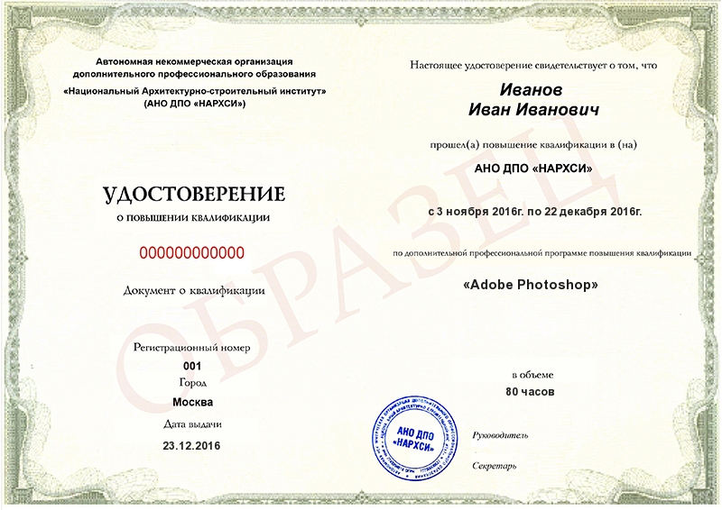 - Удостоверение. Получите документ, который подтвердит потенциальным работодателям и заказчикам ваши навыки работы в Photoshop.