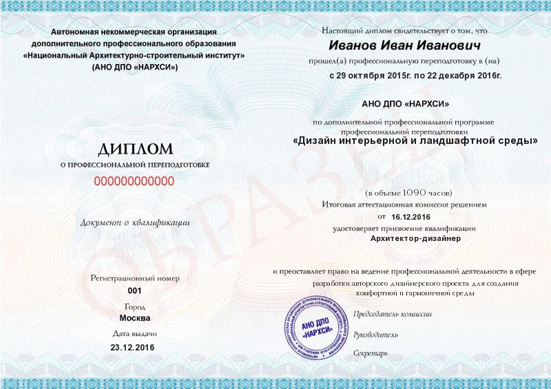 Учебный план программы профессиональной переподготовки «Дизайн интерьерной и ландшафтной среды» с присвоением квалификации «Архитектор-дизайнер»