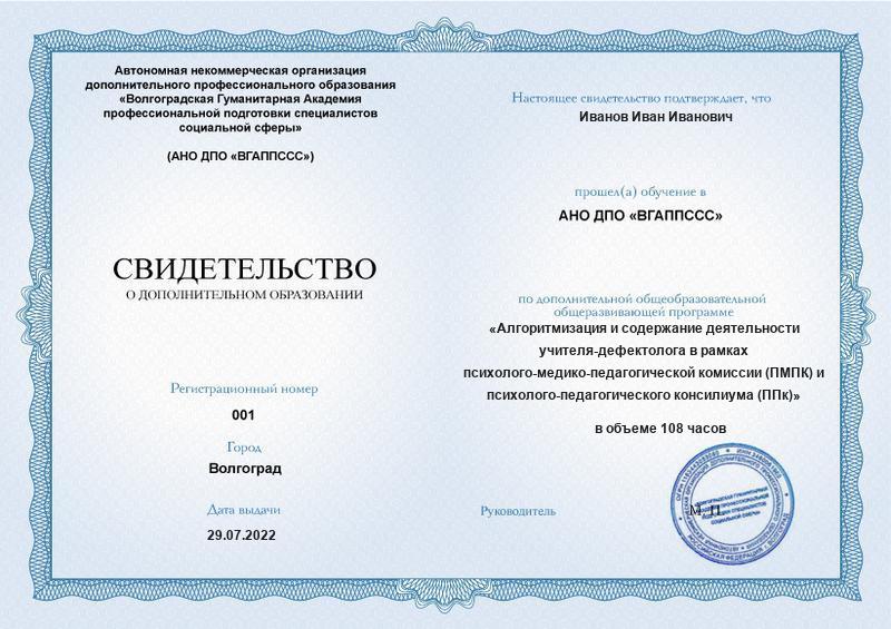 Алгоритмизация и содержание деятельности учителя-дефектолога в рамках психолого-медико-педагогической комиссии (ПМПК) и психолого-педагогического консилиума (ППк) (108ч)