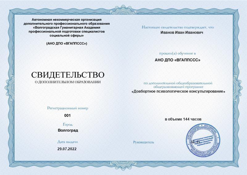 Учебный план дополнительной общеобразовательной программы «Доабортное психологическое консультирование»