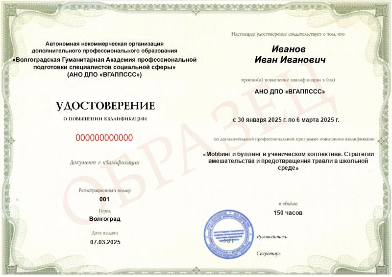 Моббинг и буллинг в ученическом коллективе. Стратегии вмешательства и предотвращения травли в школьной среде (150ч)